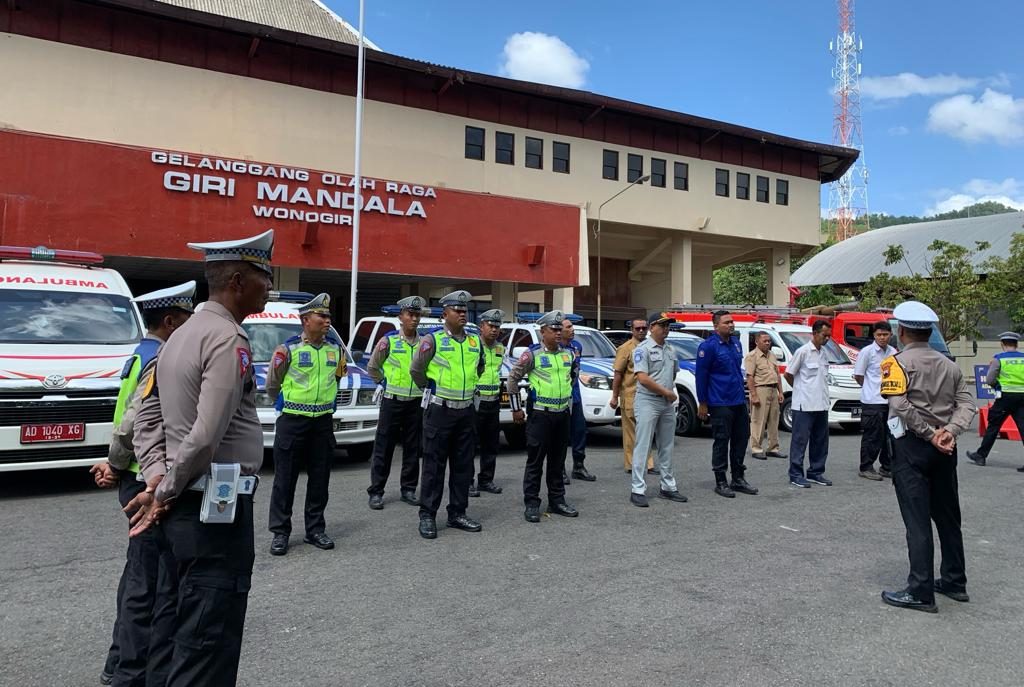 Jelang kesiapan personel Ops Lilin Candi 2023, Polres Wonogiri laksanakan apel Quick Respon terpadu di halaman GOR Giri Mandala. Senin (11/12/2023)