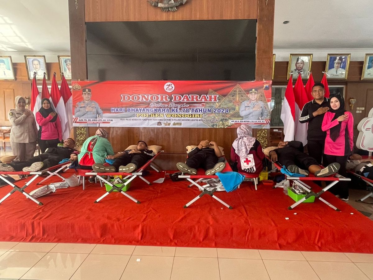 Polres Wonogiri menyelenggarakan kegiatan bakti kesehatan berupa donor darah dan layanan pemeriksanaan kesehatan.