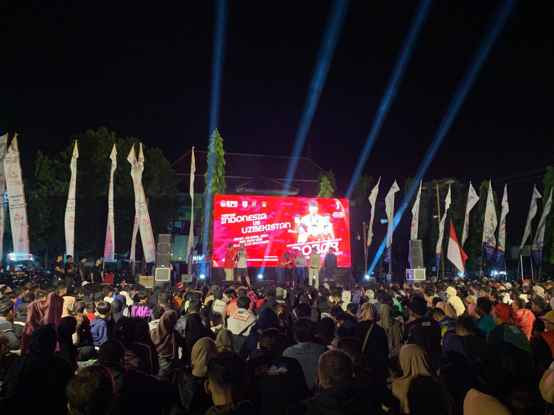 Nobar digelar di alun-alun Giri Krida Bakti Kabupaten Wonogiri. Senin malam (29/4/2024), dihadiri Kapolres Wonogiri AKBP Andi Muhammad Indra Waspada Amirullah, S.H., S.I.K., M.M., M.Si., Bupati Wonogiri Joko Sutopo, pejabat utama Polres Wonogiri, Forkopimda dan KPUD Wonogiri serta Bawaslu Kab Wonogiri dan masyarakat umum.