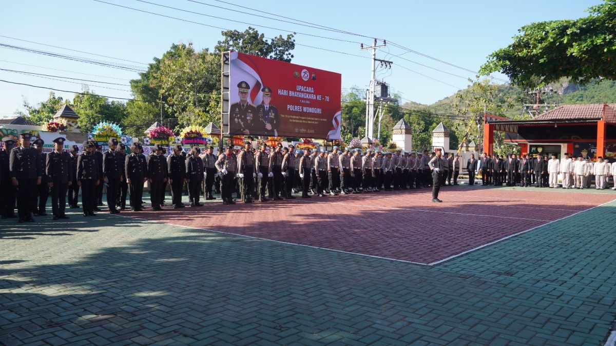 Wakapolres Wonogiri Kompol Heru Sanusi, S.I.K., mengatakan, upacara ini merupakan rangkaian kegiatan untuk memperingati hari lahir Polri yang sudah memasuki usia ke 78 tahun.