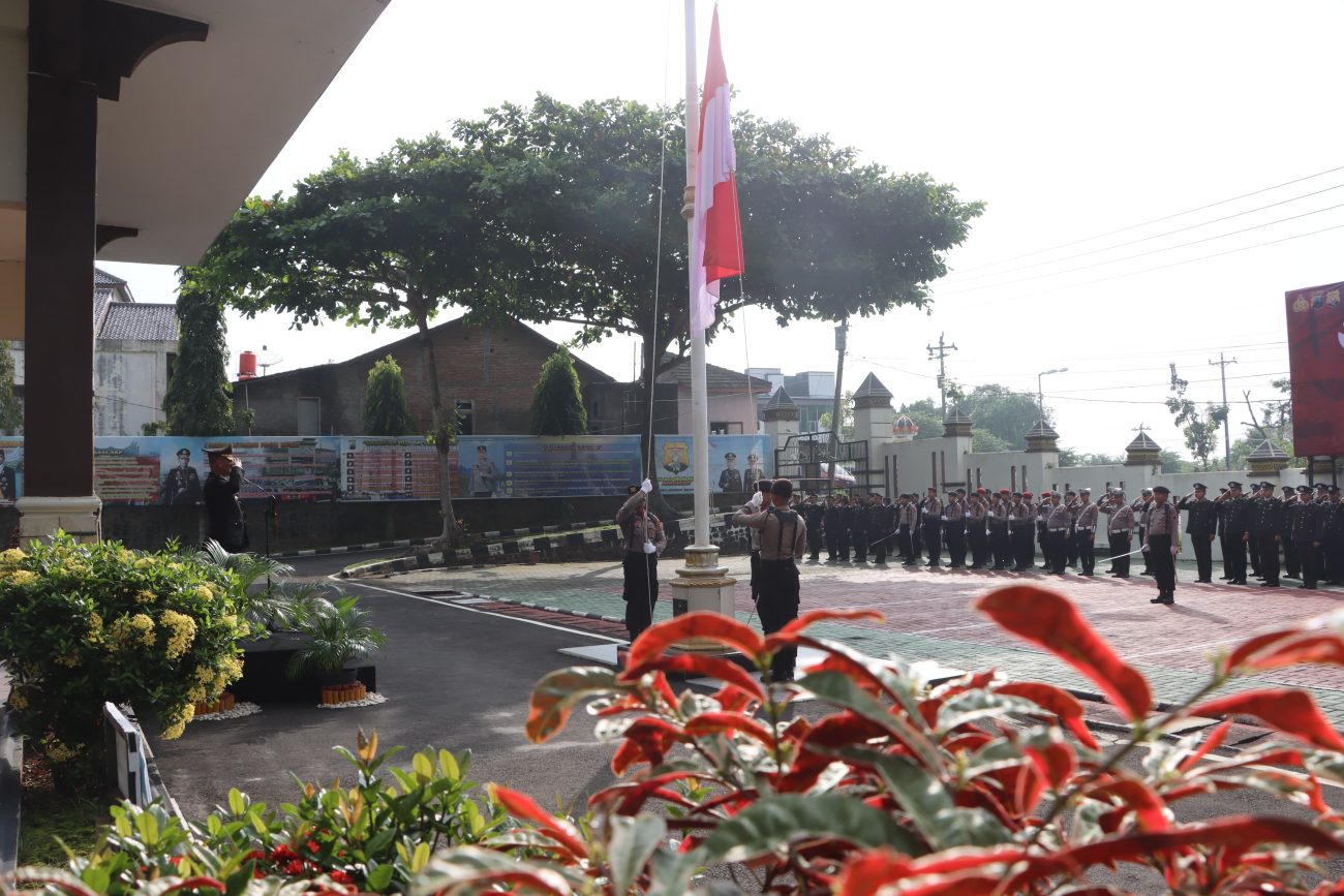 Peringati hari lahir Pancasila, Polres Wonogiri menggelar upacara bendera di halaman Mapolres. Senin, (2/6/2025).