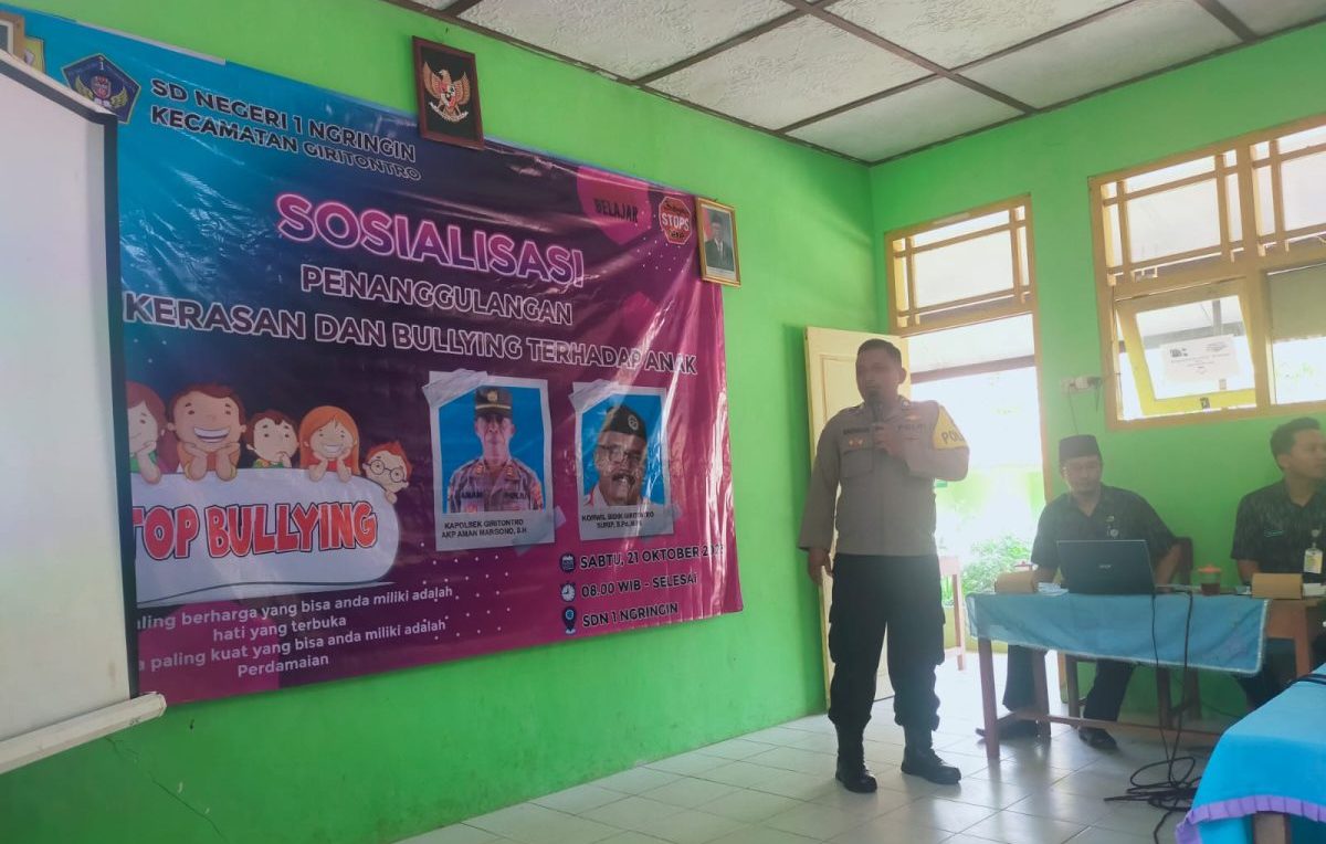 Diahadapan ratusan Siswa SD N 1 Ngringin tersebut disampaikan sosialisasi dan himbauan terkait himbauan untuk menghindari bullying, serta dampak buruk dan kiat kiat dalam menghadapi perilaku bullying.