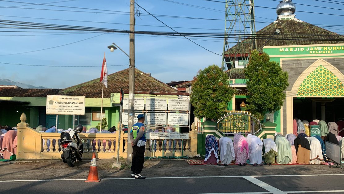 Personil Polres Wonogiri melaksanakan pengamanan jalannya Sholat Idul Fitri 1445 H /2024 M di masjid-masjid yang ada di wilkum Polres Wonogiri, Rabu (10/4/2024) pagi.