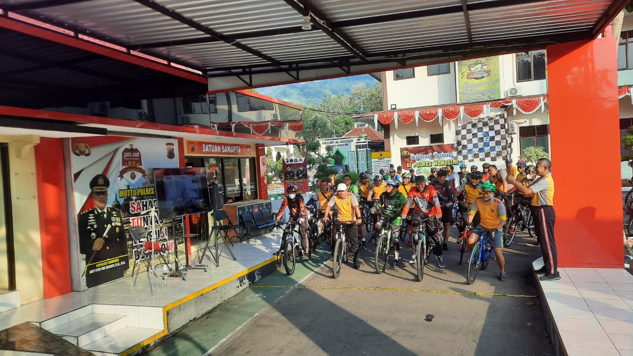 Bertempat di Mapolres Wonogiri, gowes fun bike (sepeda gembira) yang dipimpin pembukaan startnya oleh Wakapolres Wonogiri Kompol Drs.Kamiran didampingi pejabat utama polres dengan peserta dari unsur TNI, Komunitas, Insan media dan Polri. Minggu,  (19/06/2022).