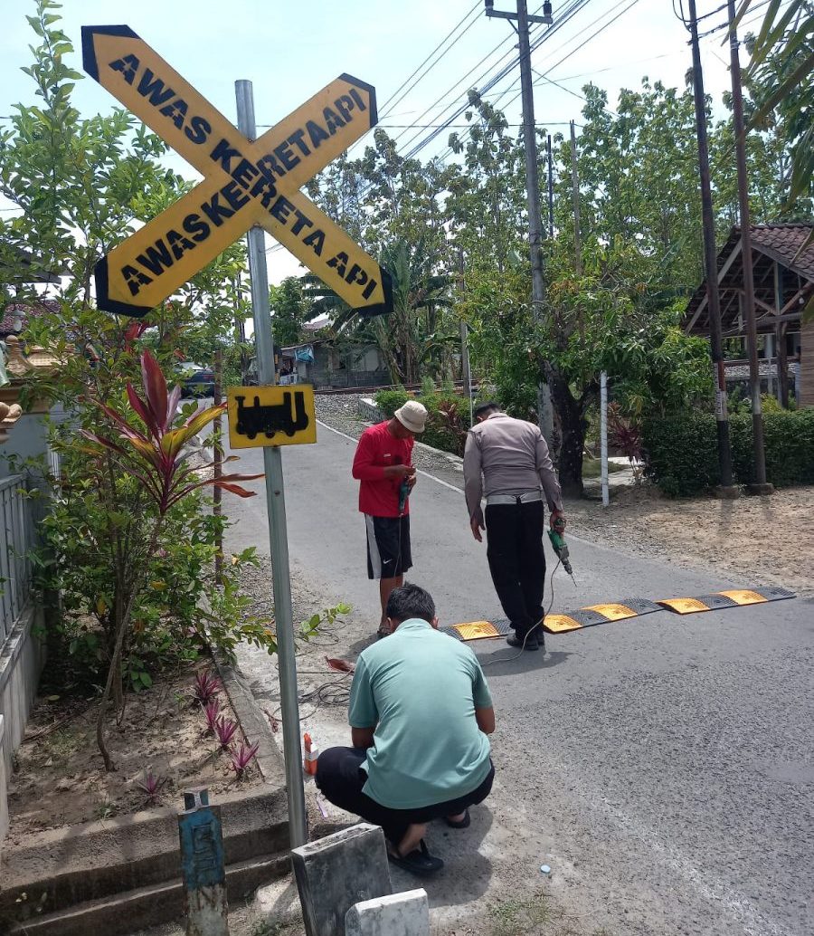 Polres Wonogiri Pasang Speed Bump di Lintasan Rel Kereta Api Selogiri untuk Cegah Kecelakaan