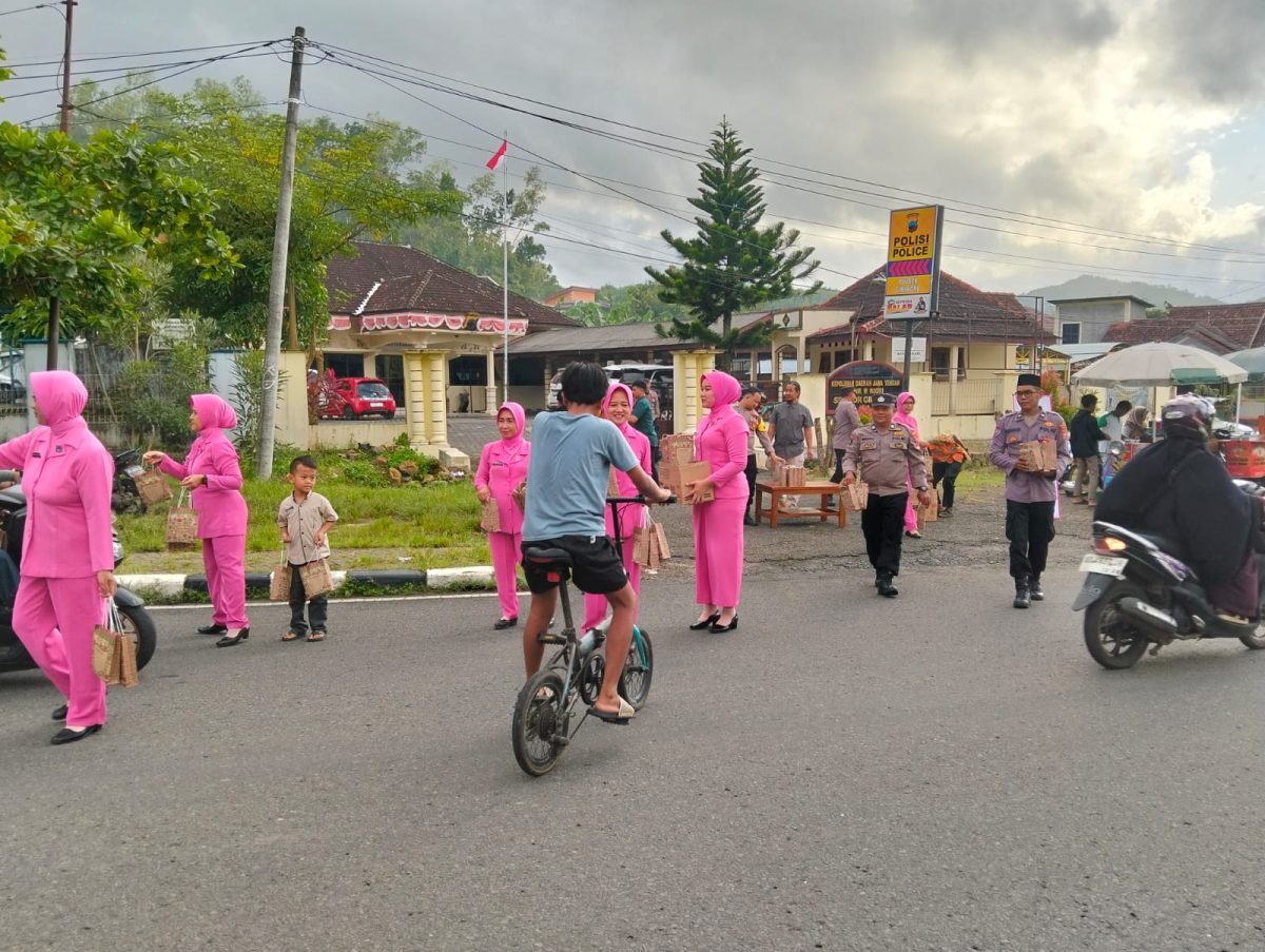 Kegiatan yang berlangsung sekitar pukul 16.30 WIB itu dilaksanakan di depan masing-masing Mapolsek dan di jalan raya yang ramai dilalui masyarakat. Personel Polsek bersama Bhayangkari membagikan ratusan paket takjil kepada para pengguna jalan dan warga sekitar menjelang waktu berbuka puasa.
