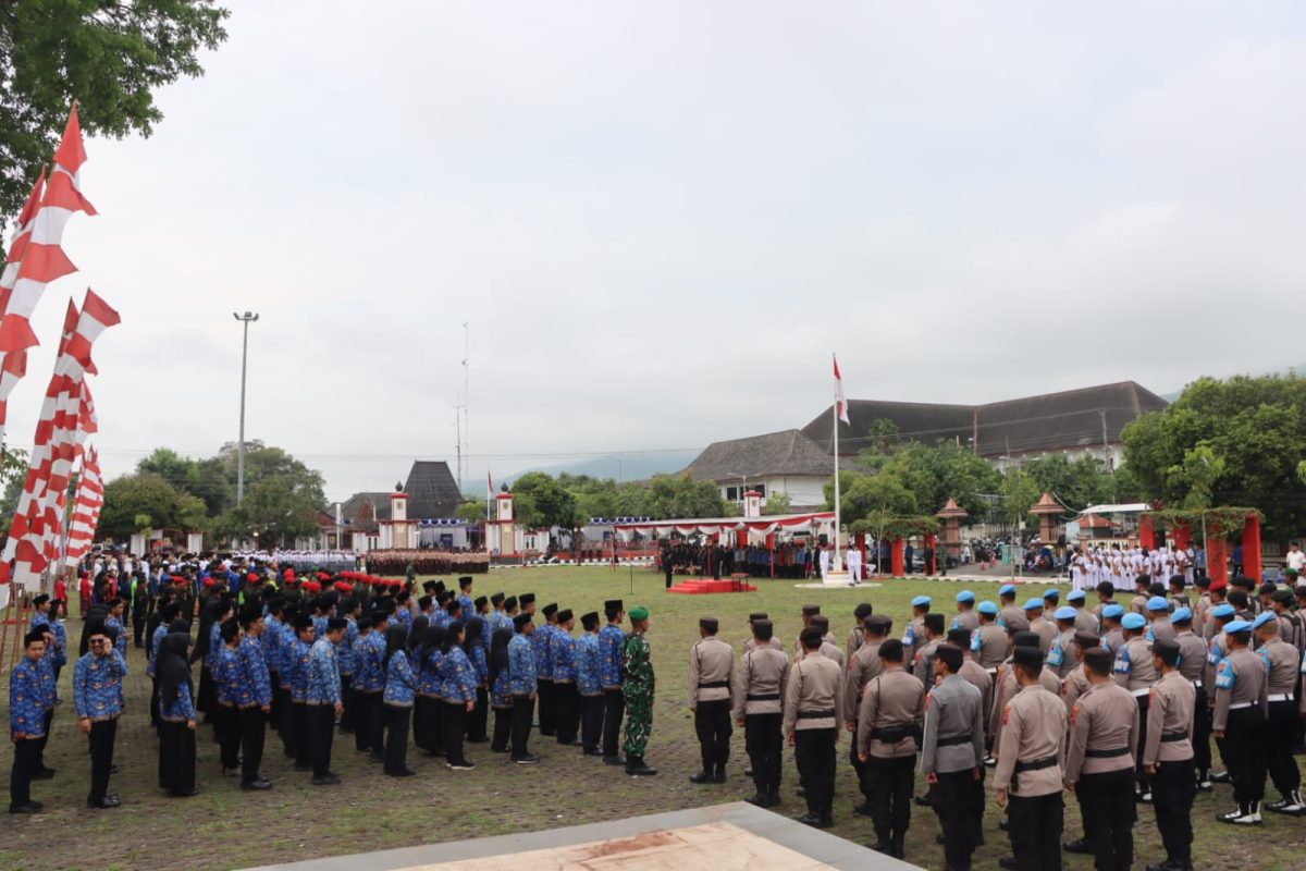 Sementara itu, pada waktu yang sama, Polres Wonogiri juga menggekar upacara internal di halaman Mapolres Wonogiri, dengan Wakapolres Kompol Parwanto, S.H., M.H. sebagai Inspektur Upacara.
