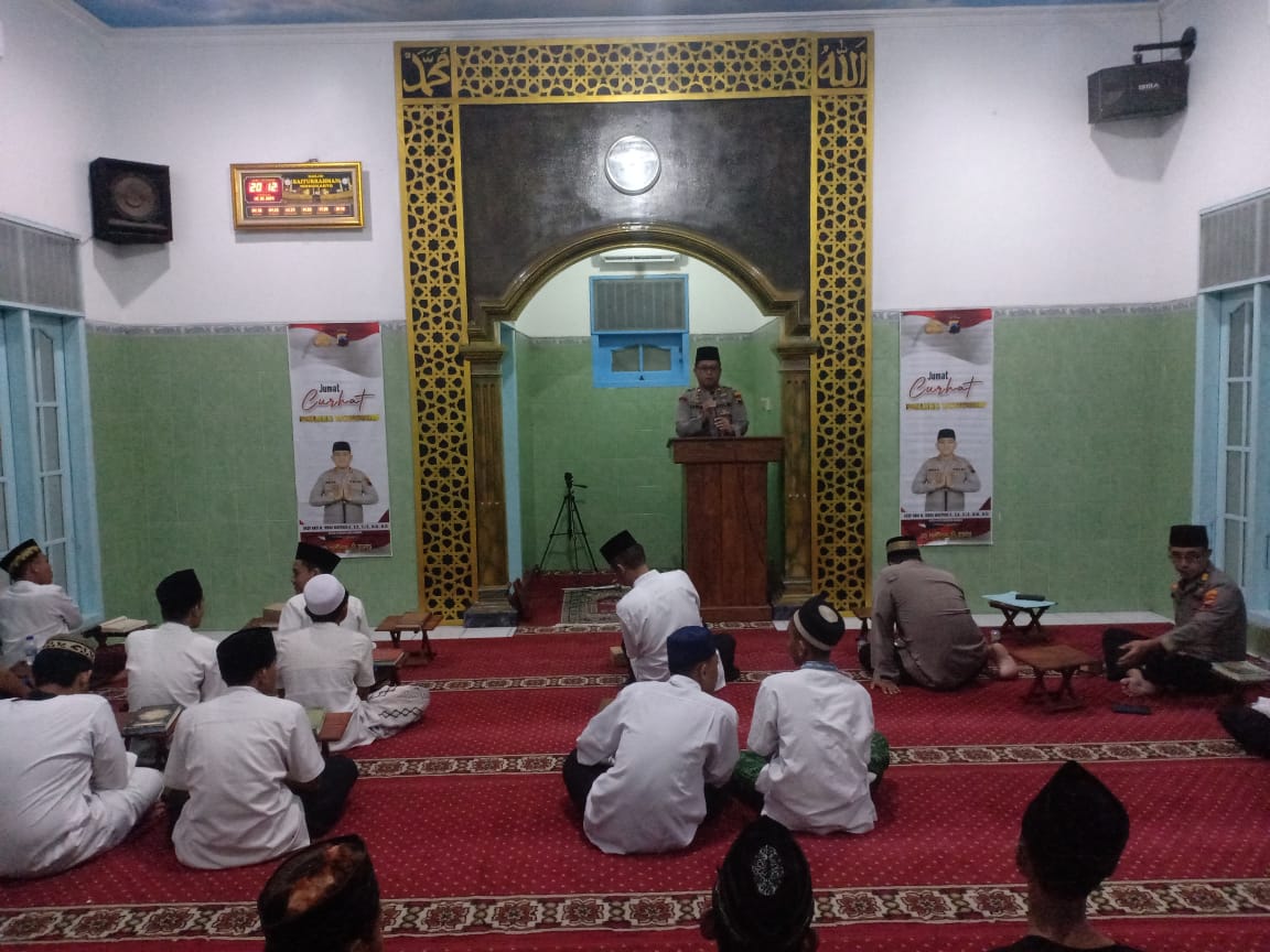 “Dalam kegiatan Jumat curhat ini kami membuka respons keluh dan kesah dari masyarakat untuk kami tindak lanjuti. Kami pihak Kepolisian menghimbau dan mengajak para warga masyarakat agar kita bersinergi bersama-sama menjaga kamtibmas mulai lingkungan atau tempat kita tinggal masing masing agar aman dan baik, kami juga mengajak kepada seluruh masyarakat untuk menjadikan masjid sebagai sarana untuk membentuk akhlak generasi muda,” ungkapnya.