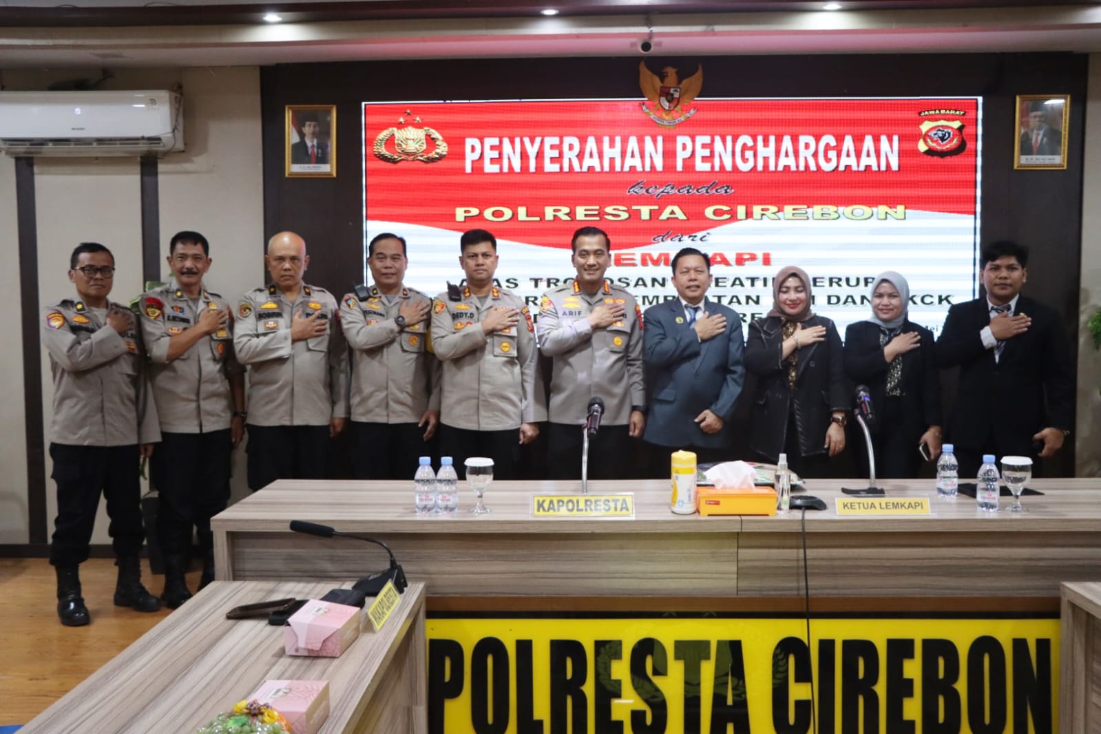 Polresta Cirebon menerima dua penghargaan sekaligus Lembaga Kajian Strategis Kepolisian Indonesia (Lemkapi). Direktur Eksekutif Lemkapi, Dr. Edi Saputra Hasibuan, SH., MH., menyerahkan langsung dua penghargaan tersebut kepada Kapolresta Cirebon, Kombes Pol Arif Budiman, SIK., MH., di Mapolresta Cirebon, Jumat (19/5/2023).