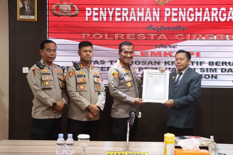 Polresta Cirebon menerima dua penghargaan sekaligus Lembaga Kajian Strategis Kepolisian Indonesia (Lemkapi). Direktur Eksekutif Lemkapi, Dr. Edi Saputra Hasibuan, SH., MH., menyerahkan langsung dua penghargaan tersebut kepada Kapolresta Cirebon, Kombes Pol Arif Budiman, SIK., MH., di Mapolresta Cirebon, Jumat (19/5/2023).