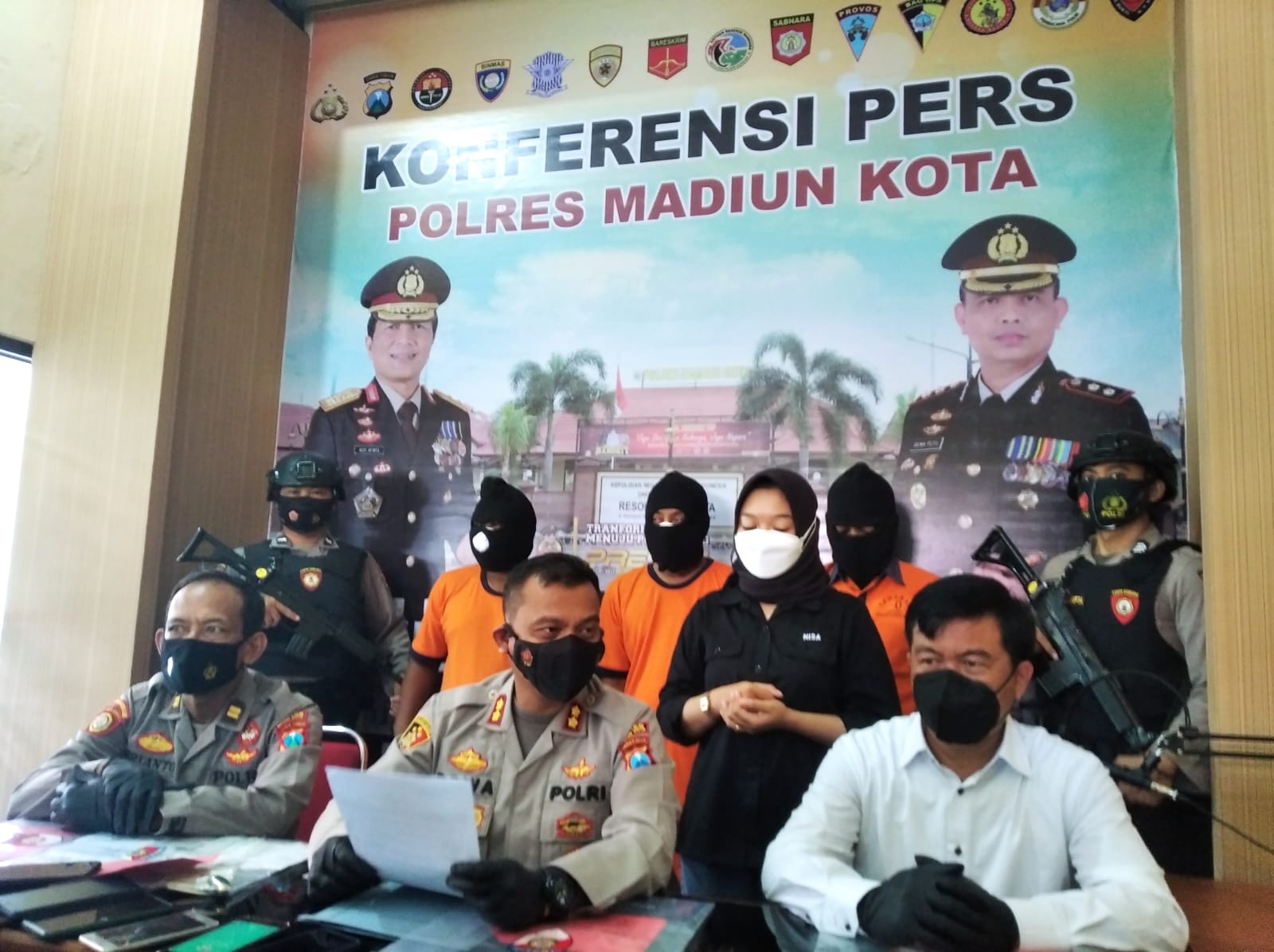 Penangkapan pelaku bermula dari laporan korban, Purwanto warga Jalan Tirtaraya Kelurahan Nambangan Kecamatan Manguharjo, Kota Madiun. Berdasarkan laporan kemudian petugas berhasil mengamankan pelaku NK, 45 warga Provinsi Riau yang saat itu berada di rumah istri mudanya.