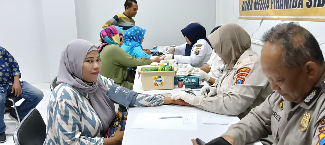 Seksi Kedokteran dan Kesehatan (Si Dokkes) Polresta Sidoarjo menggelar kegiatan bakti sosial kesehatan di Mako Polresta Sidoarjo, Rabu (23/10/2024). Kegiatan ini diikuti oleh awak media dari Piramida serta anggota Polresta Sidoarjo, dengan fokus utama pada pemeriksaan kesehatan terkait penyakit metabolik, termasuk pemeriksaan gula darah.