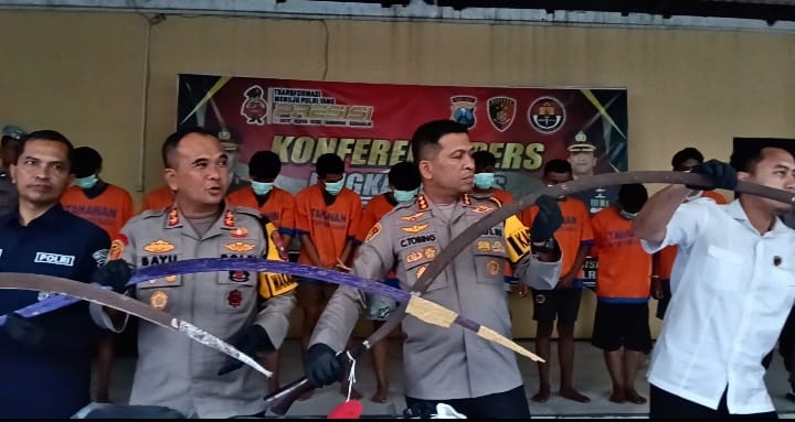 “Para tersangka kami amankan karena telah melakukan pengeroyokan, tindak kekerasan, serta kepemilikan senjata tajam. Lokasi kejadian berada di dua tempat, yakni wilayah Buduran dan Wonoayu,” ujar Kombes Pol. Christian Tobing.