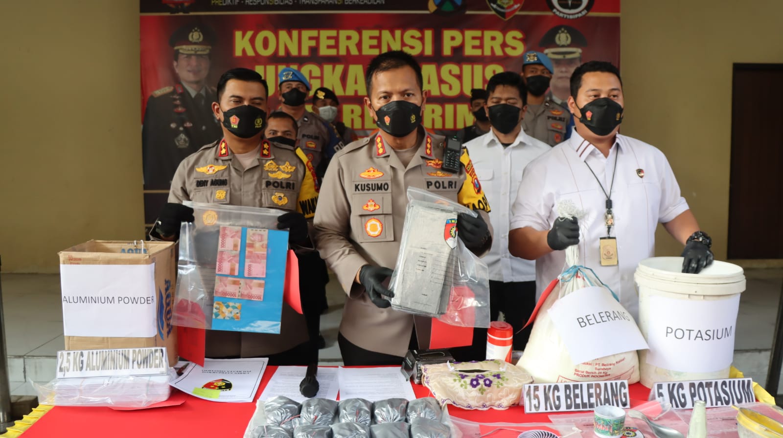 “Saat penangkapan, polisi menggeledah tersangka kedapatan di sepeda motornya 1 kilogram bahan peledak mercon,” ungkap Kapolresta Sidoarjo Kombes Pol. Kusump Wahyu Bintoro, Senin (25/4/2022).
