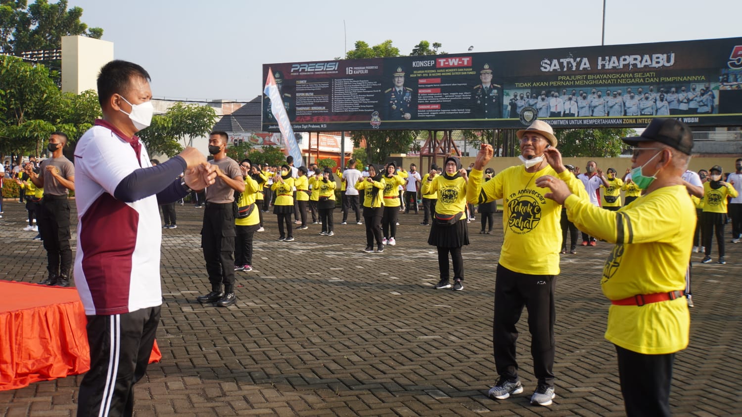 Ia juga mengapresiasi antusias Kapolresta Sidoarjo beserta anggotanya, dalam mengikuti segala macam gerakan senam yang dibawakannya bersama instruktur senam lainnya.
