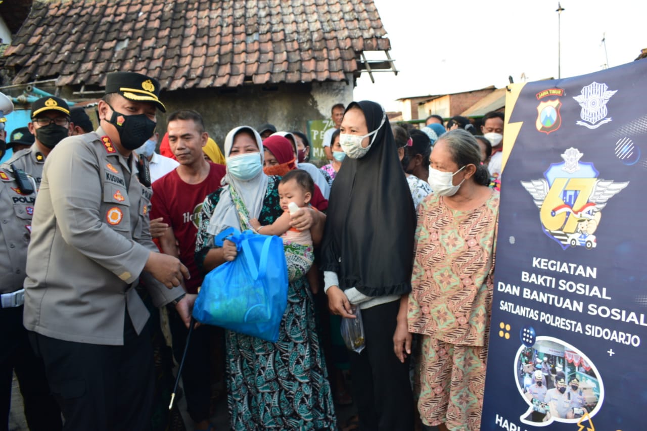Dampak penyesuaian harga Bahan Bakar Minyak (BBM) bagi masyarakat kurang mampu, mengundang kepedulian Polresta Sidoarjo bersama Alumni Universitas 17 Agustus (Untag) Surabaya. Kedua pihak turun bersama membagikan bantuan sosial (bansos) paket sembako ke masyarakat.