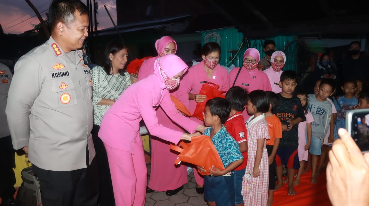 Polresta Sidoarjo bersama Bhayangkari Cabang Kota Sidoarjo dan Forkopimka Buduran, Jumat (28/10/2022) sore, membagikan sebanyak 300 paket sembako, snack dan perlengkapan sekolah di lokasi bencana puting beliung, Dusun Mlaten, Sidokepung, Buduran, Sidoarjo.