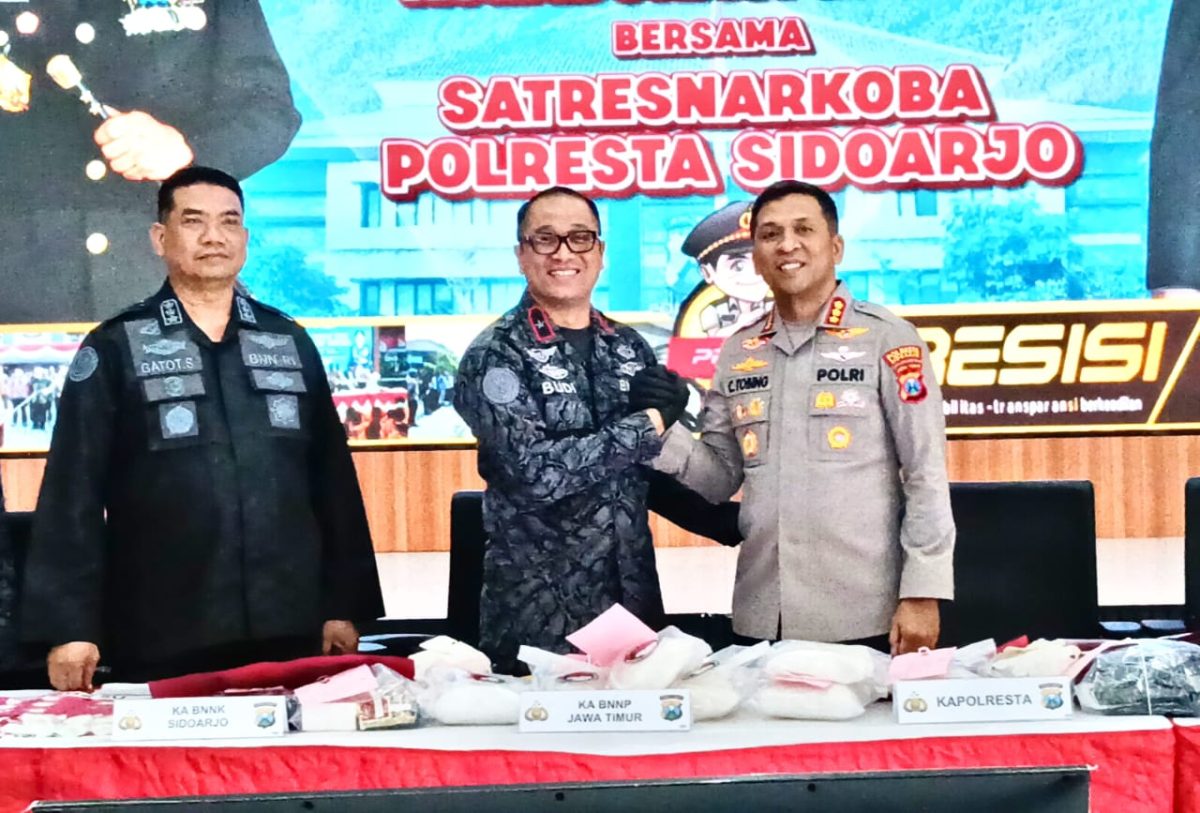 Satuan Reserse Narkoba (Satresnarkoba) Polresta Sidoarjo bersama Badan Narkotika Nasional Republik Indonesia (BNN RI) berhasil membongkar jaringan penyelundupan narkoba lintas provinsi. Dua perempuan muda ditetapkan sebagai tersangka dalam kasus yang melibatkan peredaran sabu dan ekstasi bernilai miliaran rupiah tersebut.