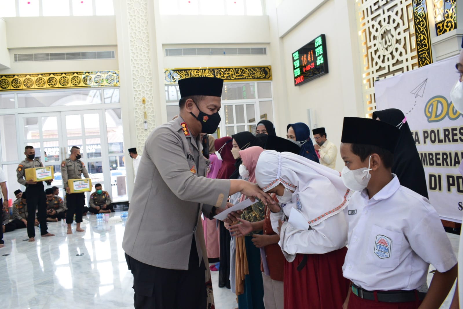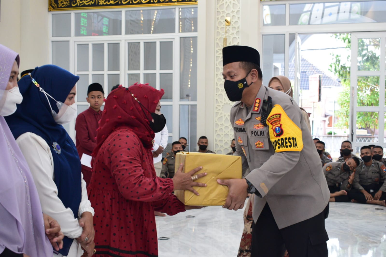 Memperingati Hari Asyura atau 10 Muharram 1444 Hijriah, Polresta Sidoarjo menggelar doa bersama dan santunan anak yatim, Senin (8/8/2022) di Masjid Al Ikhlas Polresta Sidoarjo.