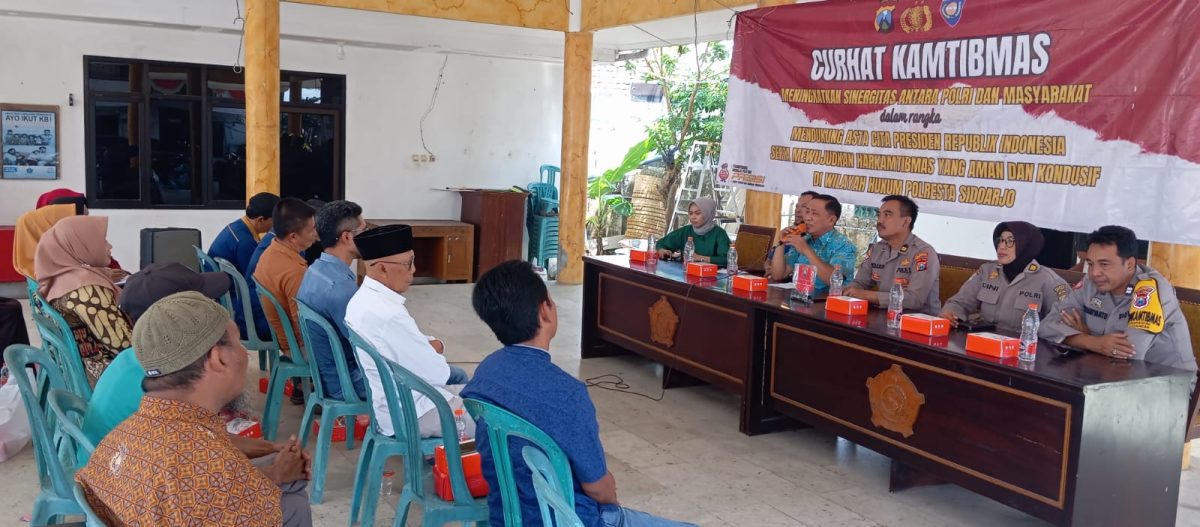 Dalam upaya menjaga situasi keamanan dan ketertiban masyarakat (kamtibmas) agar tetap aman dan kondusif, Polresta Sidoarjo melalui Satuan Pembinaan Masyarakat (Satbinmas) kembali menggelar Forum Cangkrukan Kamtibmas bersama perangkat desa, tokoh agama, karang taruna, dan masyarakat.