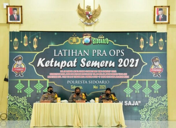 Untuk mengamankan Hari Raya Idul Fitri 1442 Hijriyah tahun 2021, Polresta Sidoarjo menggelar Latihan Pra Operasi (Latpraops) Ketupat Semeru 2021 bersama jajaran di Gedung Serbaguna, Polresta Sidoarjo, Selasa (4/5/2021).