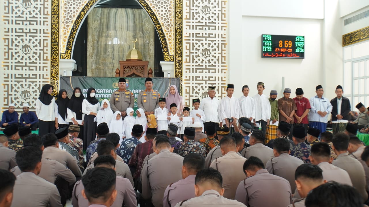 Polresta Sidoarjo menggelar peringatan Maulid Nabi Muhammad SAW 1445 Hijriyah, Rabu (27/9/2023) di Masjid Al Ikhlas Mako Polresta Sidoarjo.