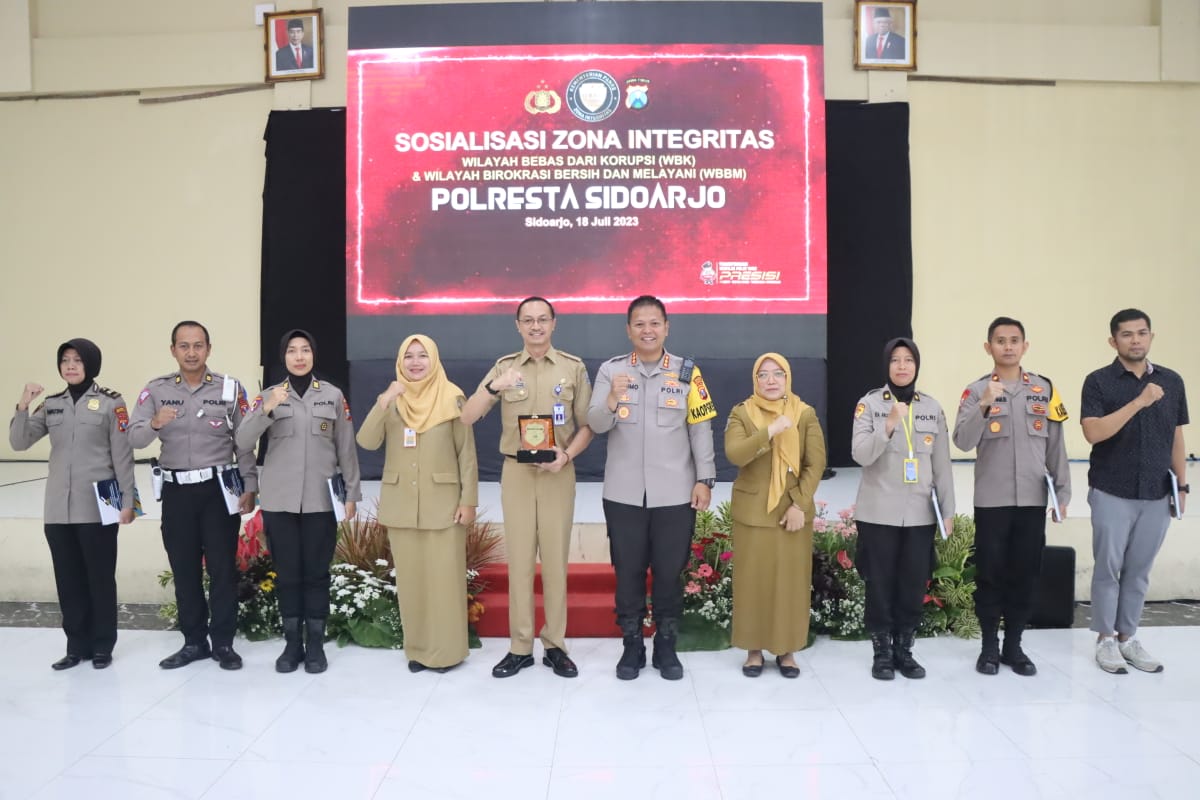 Polresta Sidoarjo terus berupaya mewujudkan komitmen bersama mempertahankan predikat Zona Integritas (ZI) Wilayah Bebas Korupsi (WBK) dan Wilayah Birokrasi Bersih dan Melayani (WBBM) tahun 2023, dengan mensosialisasikan hal-hal teknis terkait peningkatan kualitas pelayanan publik bagi seluruh personel.