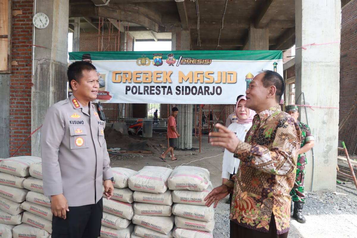Dalam kesempatan untuk berbagi dan peduli pada masyarakat di Bulan Ramadan, terus dilakukan Polresta Sidoarjo beserta jajarannya. Tempat ibadah umat muslim yang sedang melakukan renovasi atau pembangunan didatangi untuk dibantu baik tenaga maupun material bangunan.