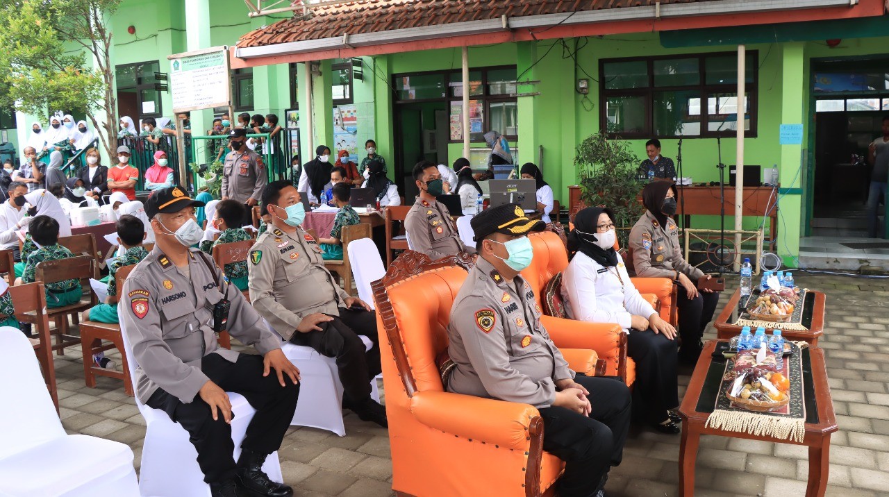 Polresta Sidoarjo mengikuti launching Vaksinasi Merdeka Anak melalui virtual bertempat di SDN Jati, Sidoarjo, Rabu (5/1/2022). Ikut dalam acara ini pejabat utama Polresta Sidoarjo dan Kapolsek jajaran.