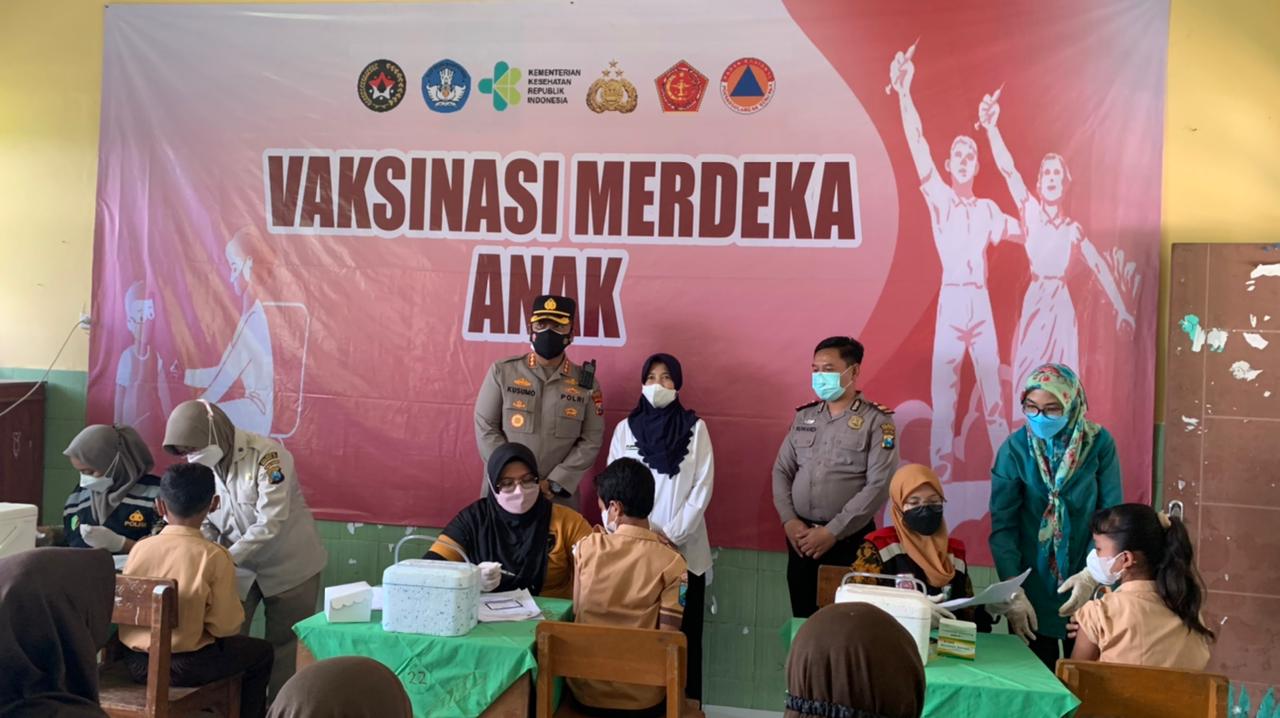 Vaksinasi Merdeka Anak terus dimasifkan Polri bersama pihak terkait. Termasuk digencarkan Polresta Sidoarjo, dengan menyasar anak sekolah usia 6 sampai 11 tahun.