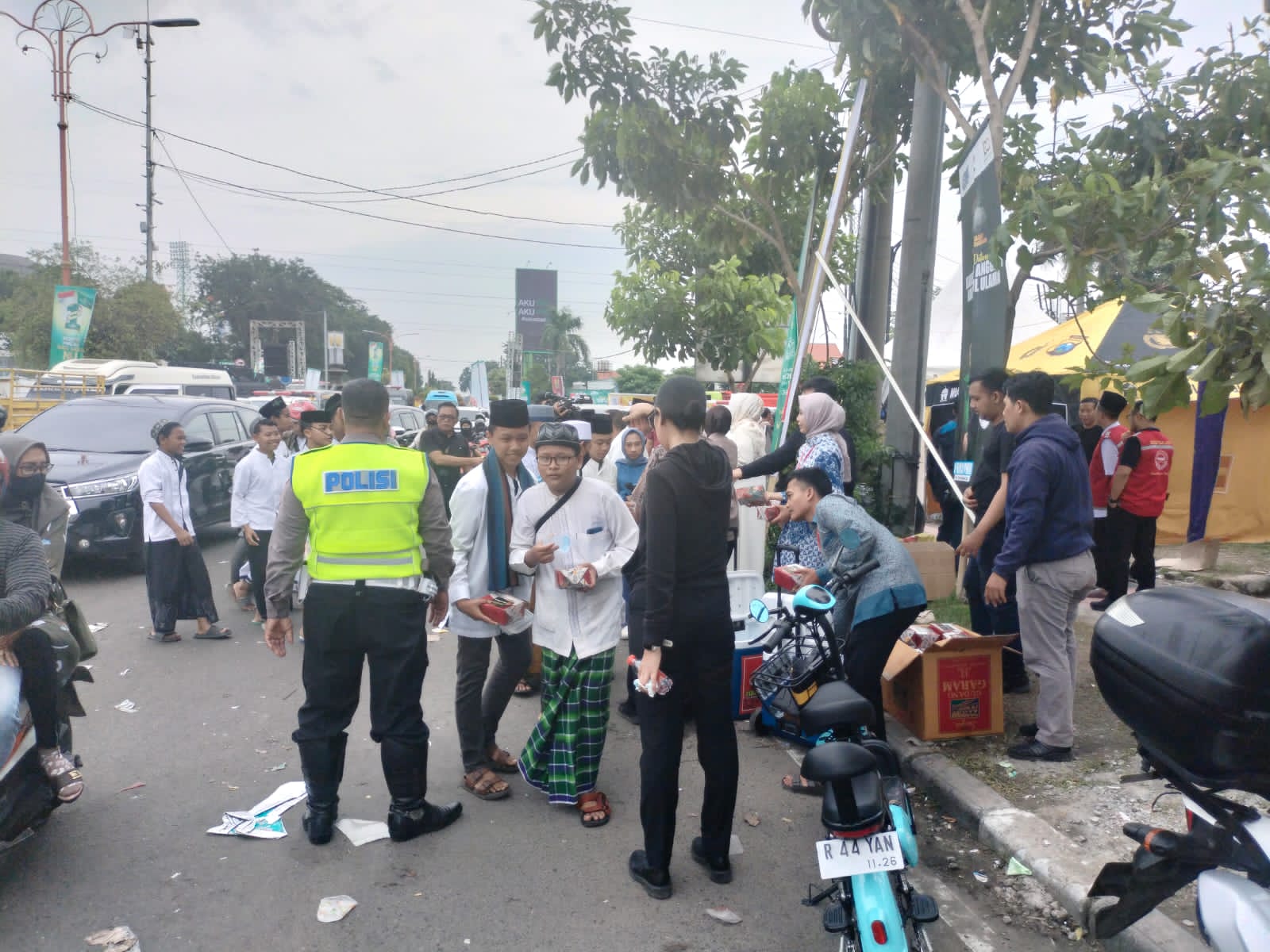 “Kami bermaksud menyemarakan acara melalui kegiatan peduli dengan berbagi makanan dan minuman untuk para jamaah. Tak lupa kami sampaikan agar jamaah hati-hati di perjalanan dan tetap patuhi peraturan lalu lintas,” jelasnya. (Ags/MW)