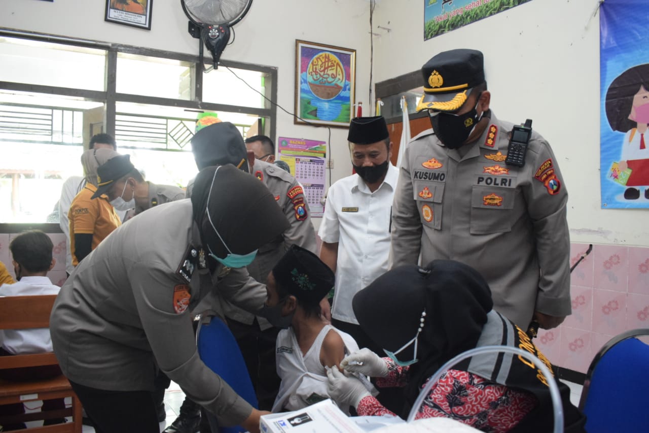 Polresta Sidoarjo Suntik Vaksin 500 Murid MIN 1