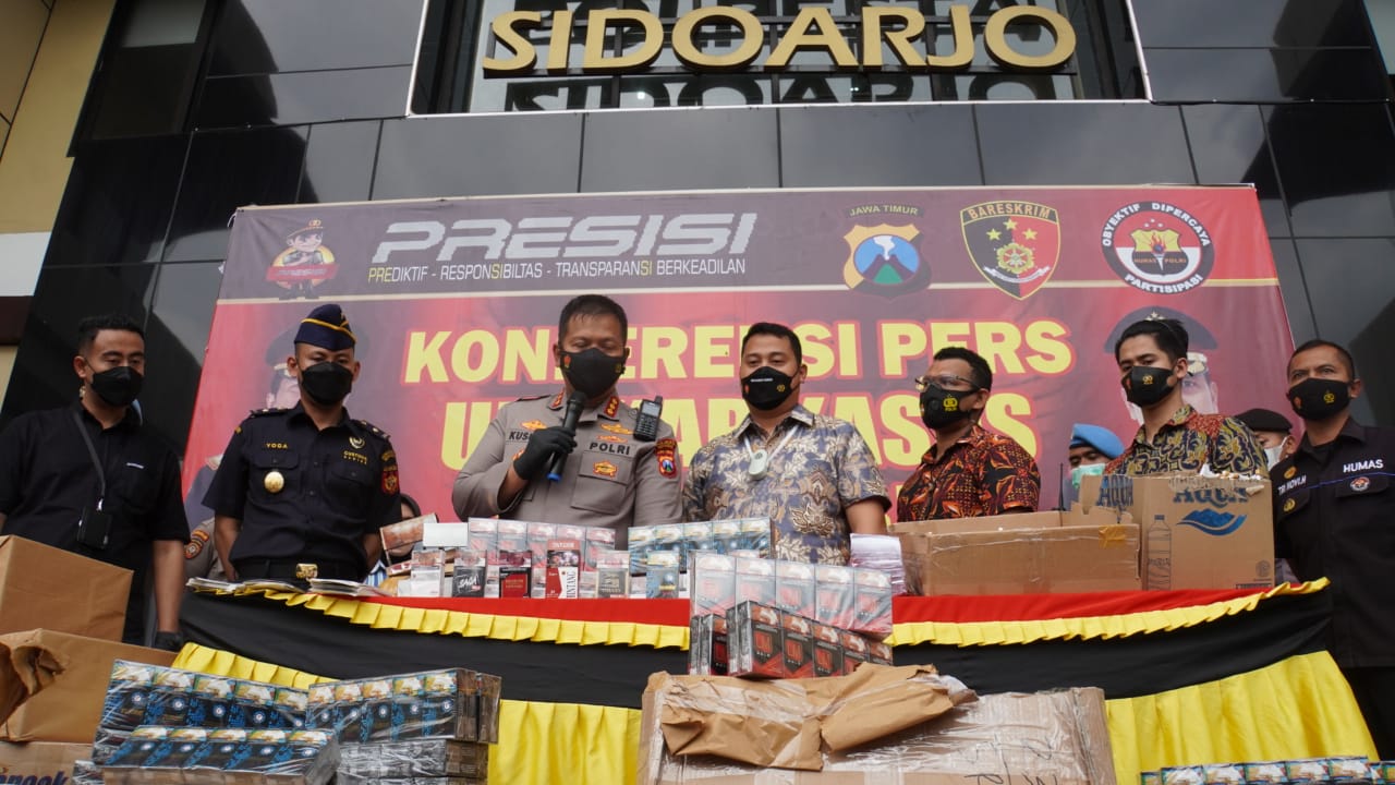 “Dari pengakuan saudari N, pasokan rokok dan pendistribusiannya adalah usaha dari orang atau pemilik usaha yang dalam pengejaran Polisi. Jadi N sebagai pemilik rumah hanya ditempati pengepakan rokok tanpa pita ini, yang bersangkutan N dan tujuh karyawan pengepakan posisinya sebagai saksi,” jelas Kapolresta Sidoarjo Kombes Pol. Kusumo Wahyu Bintoro.