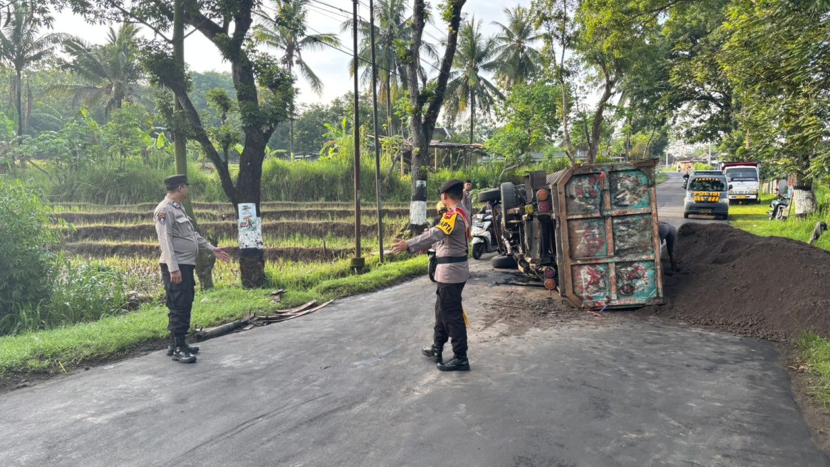 Polri Gerak Cepat Tangani Truk Bermuatan Pasir Terguling di Jalur Ngadirojo–Nguntoronadi