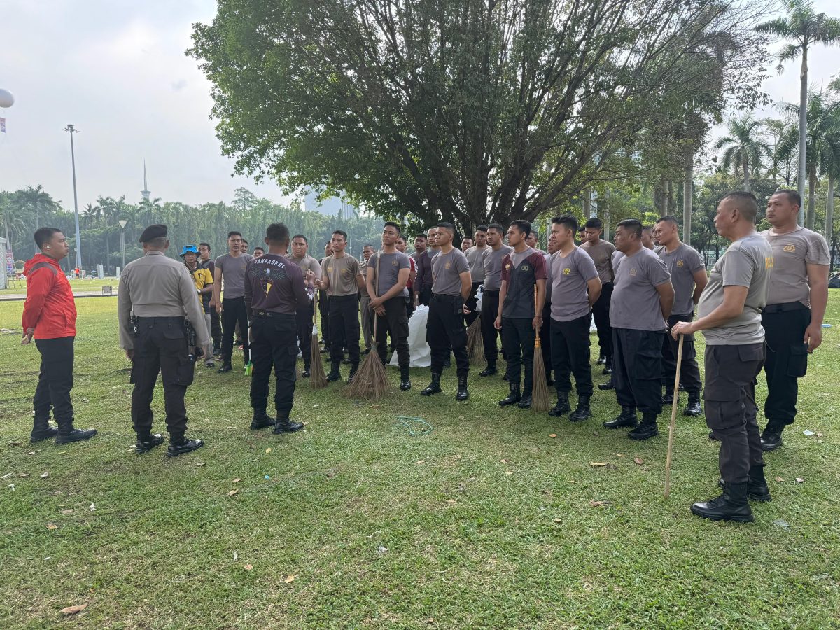 Polri Lakukan Bersih-bersih Usai Pesta Rakyat di Monas
