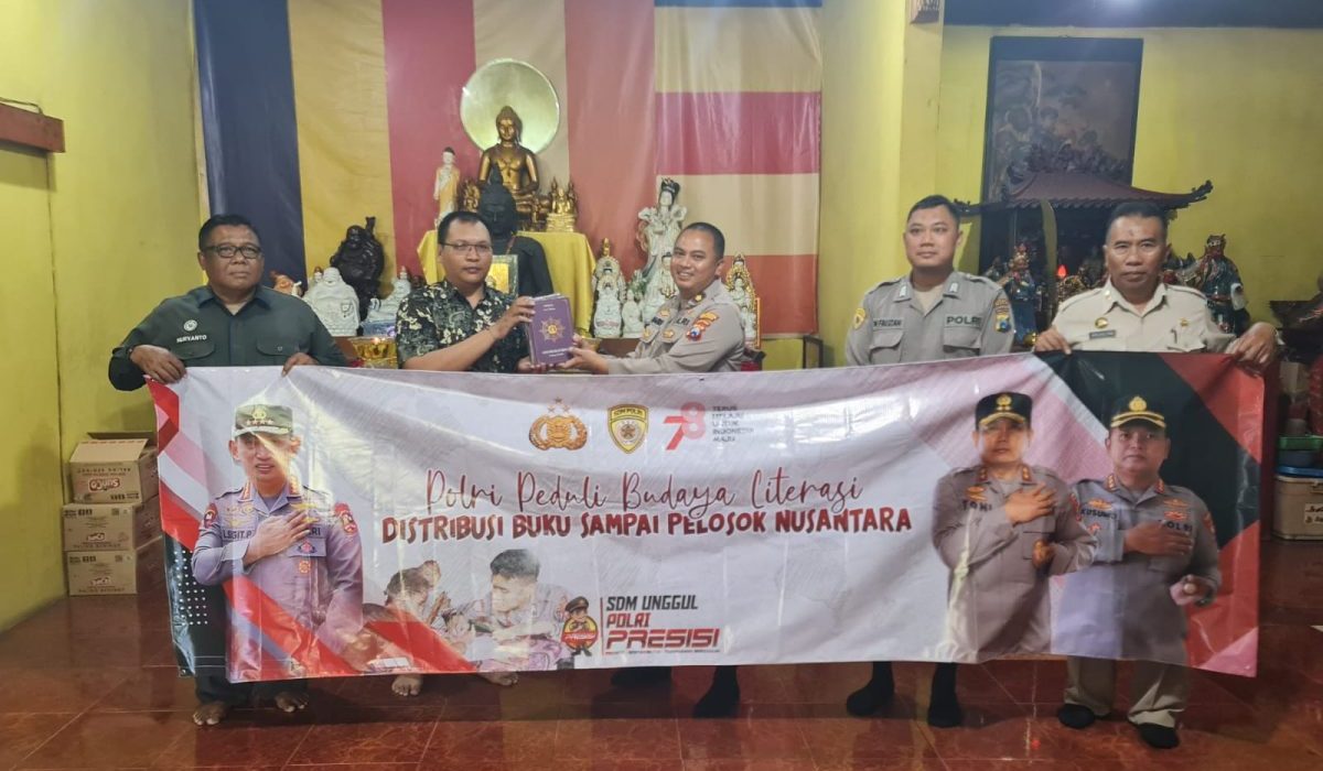Kegiatan bakti sosial Polri Peduli Budaya Literasi dengan mendistribusikan buku sampai pelosok Nusantara, dilakukan Polresta Sidoarjo dengan menyalurkan kitab suci agama Budha ke Vihara Dharma Bhakti Sidoarjo, Sidoarjo, Kamis (31/8/2023).