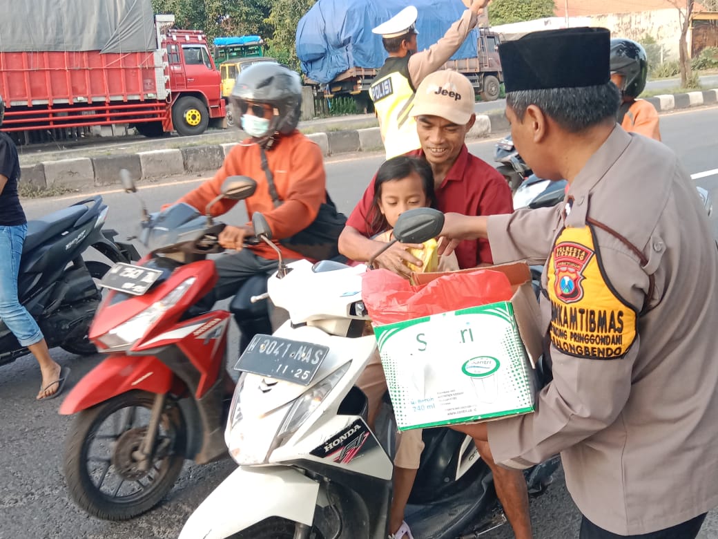 Mengisi Bulan Ramadhan dengan berbagi pada sesama, dilakukan Polsek Balongbendo melalui pembagian takjil kepada warga sekitar mako polsek dan pengendara, Rabu (5/3/2025).