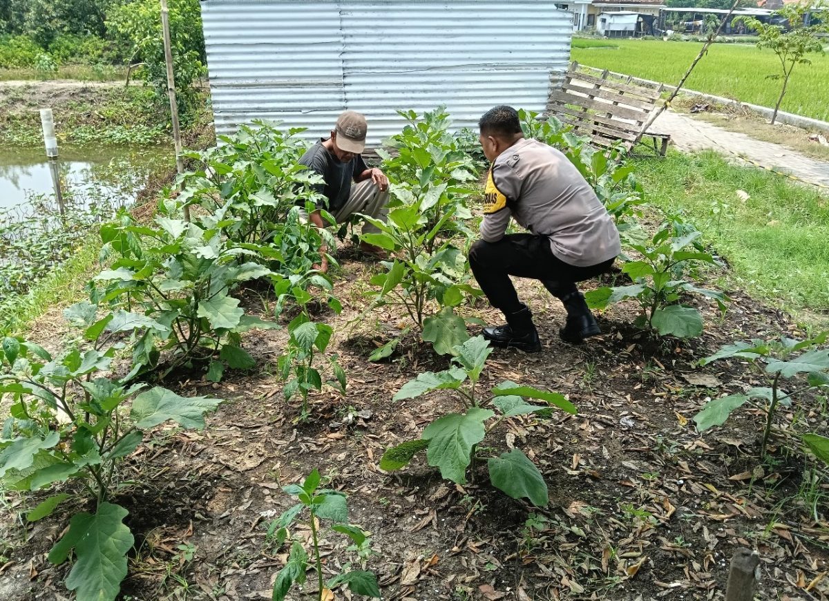 Upaya mendukung program ketahanan pangan Polresta Sidoarjo Polda Jatim wujudkan Asta Cita menuju Swasembada Pangan dalam Program Polisi Cinta Petani, anggota Bhabinkamtibmas Desa Kedungrejo, Kecamatan Jabon, Kabupaten Sidoarjo, Bripka Heri Kiswanto melaksanakan kegiatan pengecekan dan pemantauan lahan pekarangan milik warga yang dimanfaatkan sebagai perkebunan tanaman sayuran, Senin (9/6/2025).