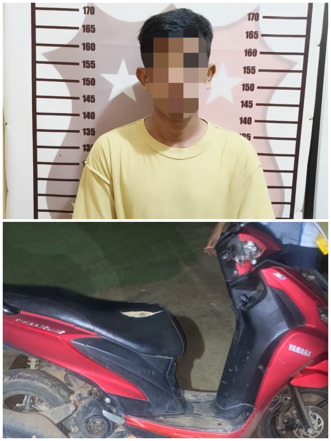Tidak hanya meringkus pelaku petugas juga berhasil mengamankan barang bukti 1 unit HP Realme C25Y imei18601139053599135,imei2 860139053599127,warna abu metal, Sepeda motor Yamaha pregos warna merah tanpa nopol Helm warna merah merek NHK dan jaket warna hitam.