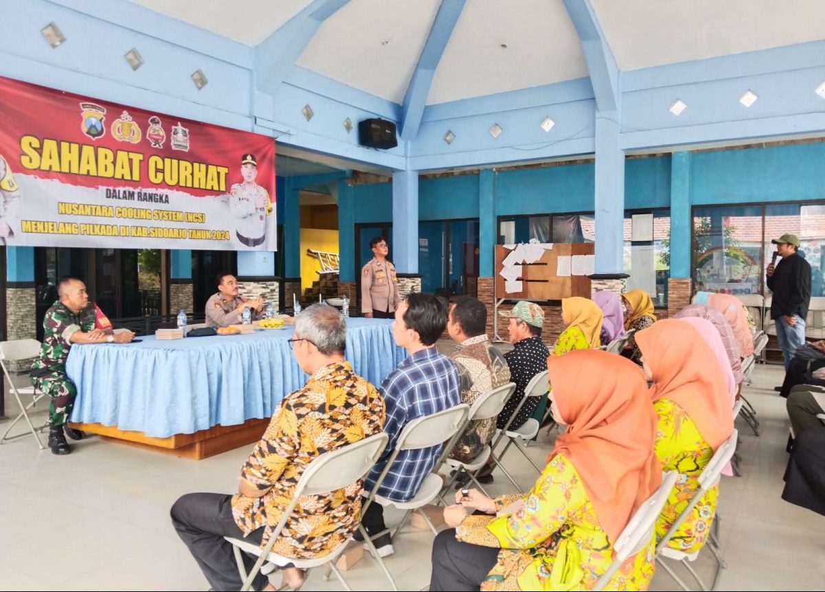 Polsek Krembung menggelar diskusi bertajuk “Sahabat Curhat” bersama perangkat desa, tokoh masyarakat, dan warga setempat. Acara ini digelar pada Kamis (3/10/2024) di Pendopo Balai Desa Rejeni, Krembung, sebagai upaya menciptakan situasi keamanan dan ketertiban masyarakat (kamtibmas) yang aman dan kondusif menjelang Pilkada Serentak 2024.