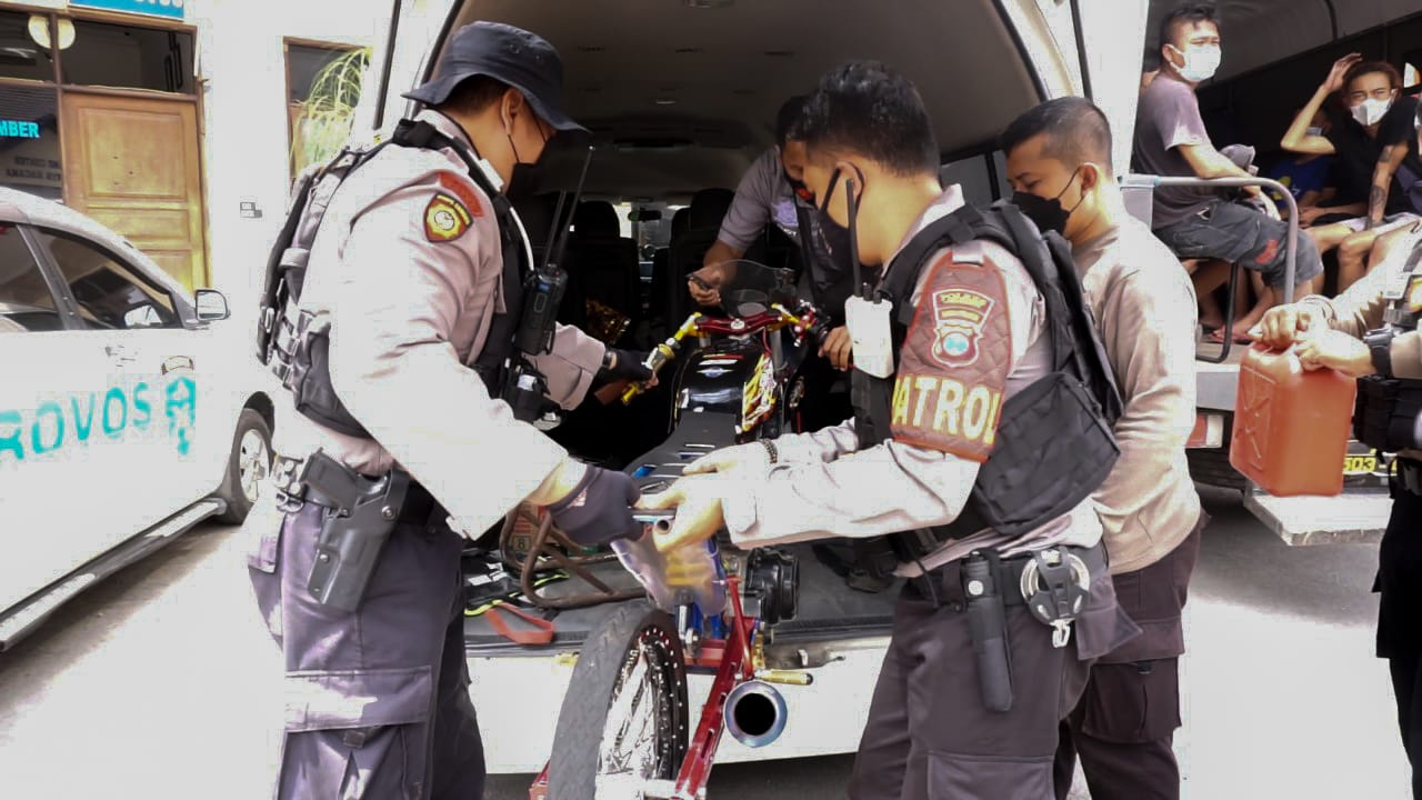 Setidaknya 1 unit R2 modifikasi ‘kereta’ (sepeda motor dengan modifikasi tertentu) serta 5 roda 4 (mobil) berhasil diamankan aparat Kepolisian saat menggelar Patroli di wilayah JLS pada Sabtu (4/9/2021).