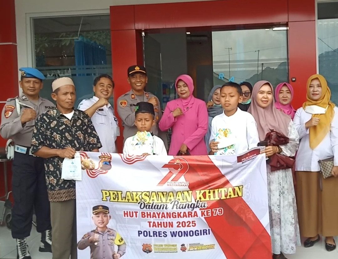 Dalam rangka menyambut Hari Bhayangkara ke-79, Polsek Purwantoro Polres Wonogiri Jawa Tengah menggelar kegiatan bakti sosial berupa khitan gratis bagi anak-anak dari keluarga kurang mampu. Kegiatan dipimpin langsung oleh Kapolsek Purwantoro, Iptu Nugroho Setyo Hartono, SH., bersama jajaran anggota serta Ketua Ranting Bhayangkari Polsek Purwantoro dan para pengurusnya. (16/6/2025).