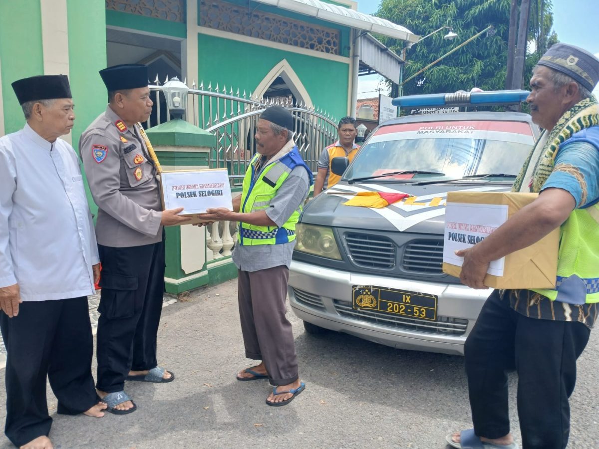 Kepedulian Polri terhadap masyarakat kembali ditunjukkan oleh jajaran Polres Wonogiri. Kali ini, Kapolsek Selogiri bersama anggota melaksanakan kegiatan Jumat Berkah dengan menyalurkan bantuan sembako kepada dua warga yang secara sukarela membantu penyeberangan jemaah masjid.