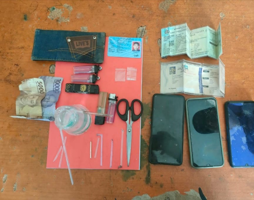 Ketiganya ditangkap berikut barang bukti satu paket kecil narkoba jenis sabu-sabu dan alat hisap (bong) serta tiga unit HP berbagai merek serta tiga buah korek api berikut sejumlah pipet bekas hisap sabu.