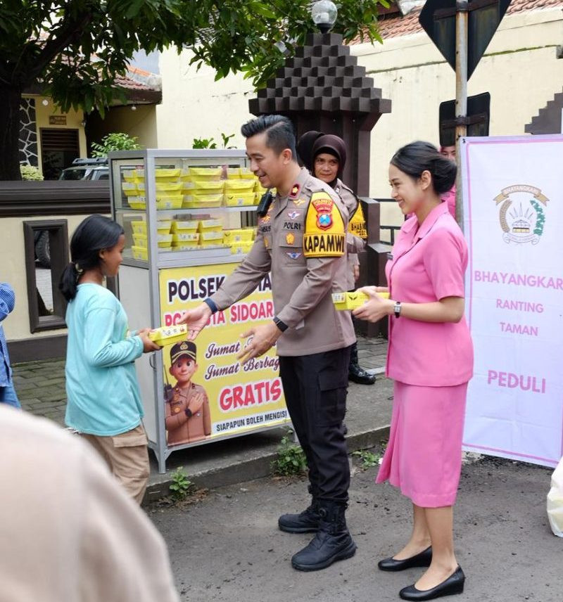 Mengawali tahun 2026, Polsek Taman Polresta Sidoarjo bersama Bhayangkari menggelar aksi sosial bertajuk Jumat Berkah Jumat Berbagi. Kegiatan ini diwujudkan melalui pembagian puluhan paket makanan kepada masyarakat di depan Mako Polsek Taman, Jumat (2/1/2026).