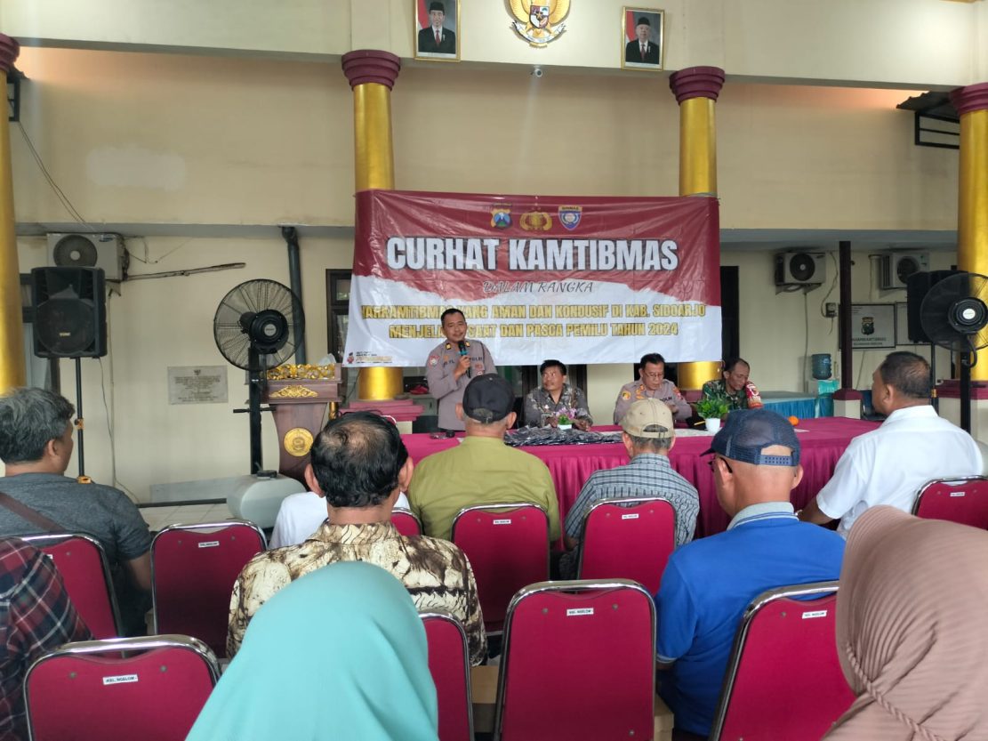 Polsek Taman Polresta Sidoarjo mengadakan forum tatap muka dengan warga, melalui Curhat Kamtibmas menghadirkan tokoh agama, tokoh masyarakat, karang taruna serta Forkopimka Taman, berlangsung Kamis (7/3/2024) di Kantor Kelurahan Ngelom, Taman, Sidoarjo.