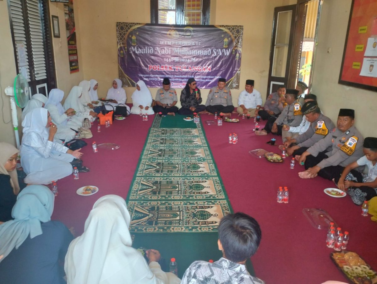 Polsek Tulangan bersama Bhayangkari dan anggota menggelar peringatan Maulid Nabi Muhammad SAW di Aula Polsek Tulangan pada Sabtu (14/09/2024). Acara ini dihadiri oleh personel Polresta, Bhayangkari, masyarakat sekitar, serta puluhan anak yatim yang turut menerima santunan dan bantuan sembako, sebagai wujud kepedulian sosial dari Polsek Tulangan.