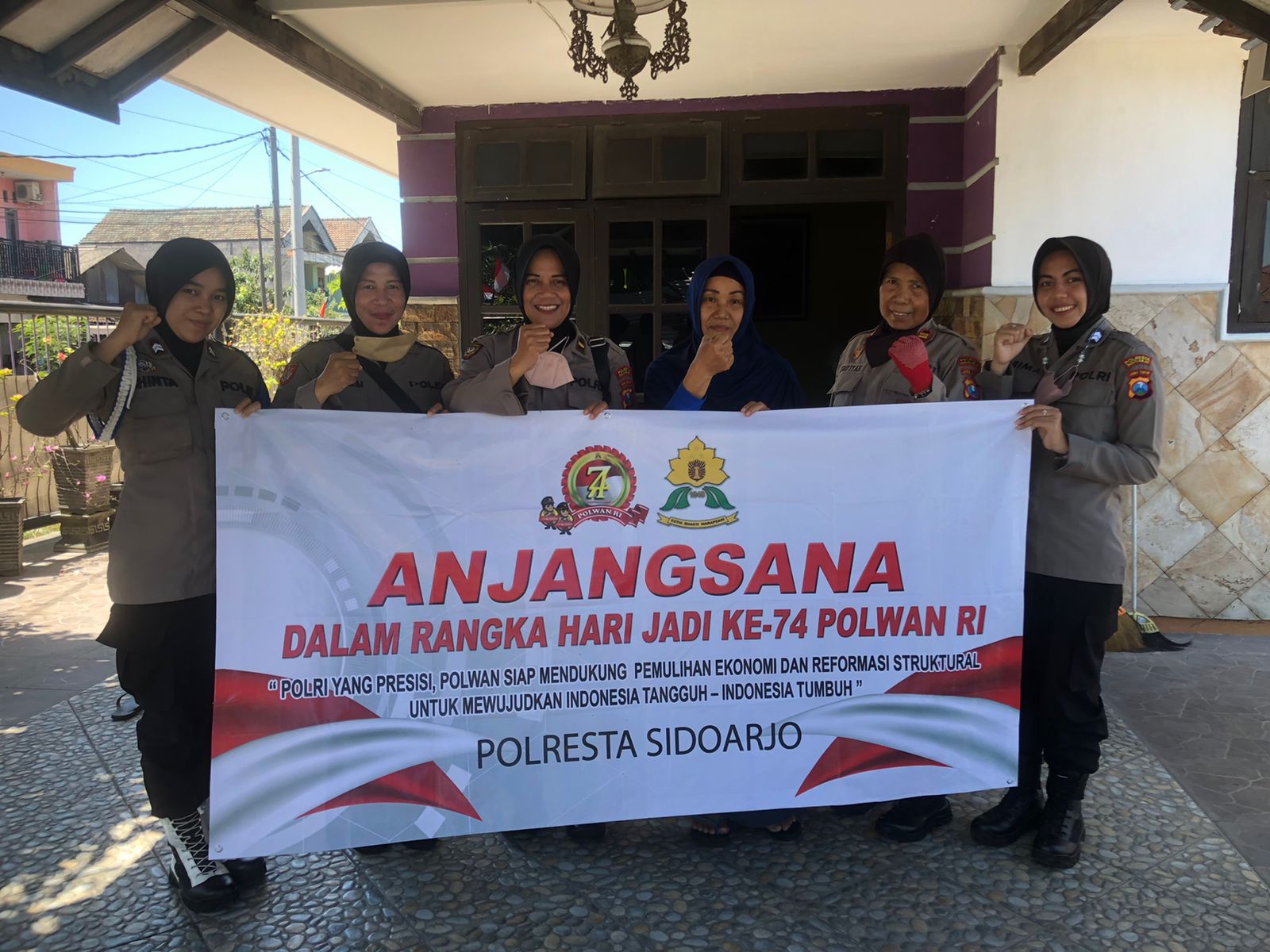 Peringati Hari Ulang Tahun Polisi Wanita (Polwan) ke-74, Polwan Polresta Sidoarjo melaksanakan kegiatan anjangsana ke rumah purnawirawan Polwan, maupun anggota Polwan yang sakit di wilayah Kabupaten Sidoarjo, Selasa (9/8/2022).