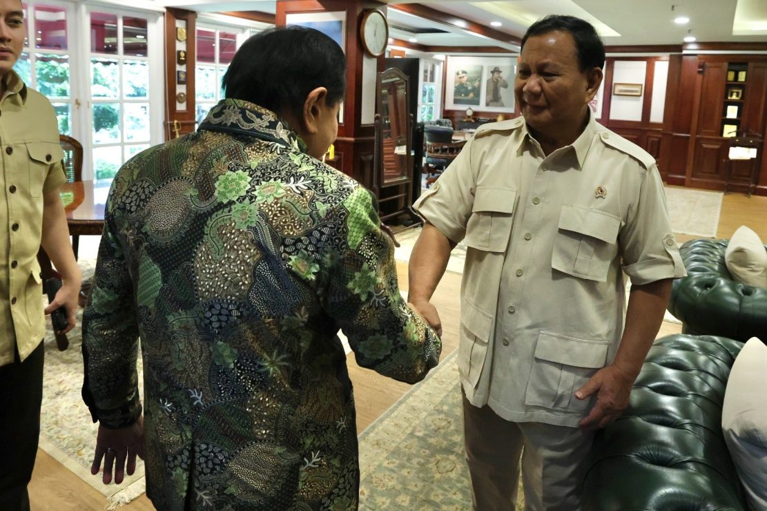 Prabowo dan Hendropriyono melanjutkan perbincangan akrab di dalam ruang kerja tersebut.