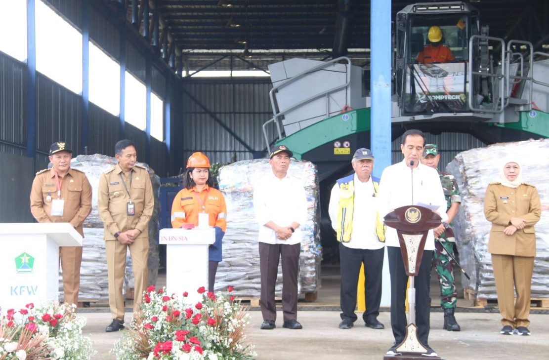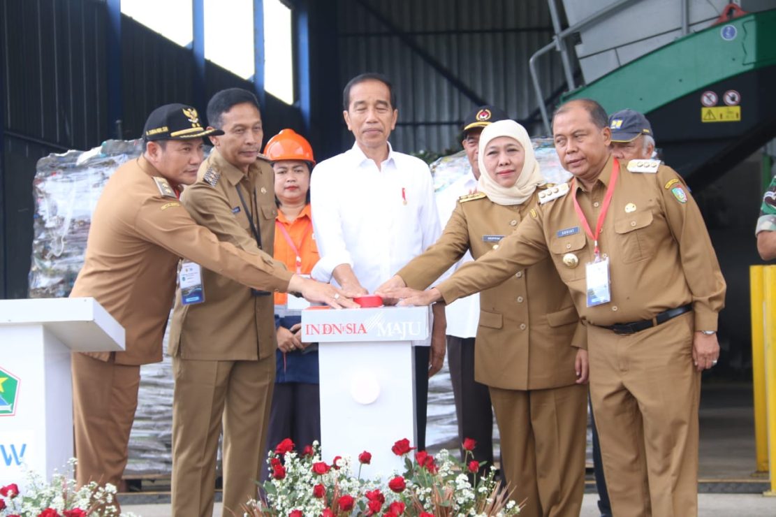 Presiden Jokowi meresmikan tiga Tempat Pemrosesan Akhir (TPA) di Jawa Timur, termasuk TPA Griyo Mulyo Jabon Sidoarjo, TPA Banjardowo Kabupaten Jombang dan TPA Supit Urang Kota Malang.